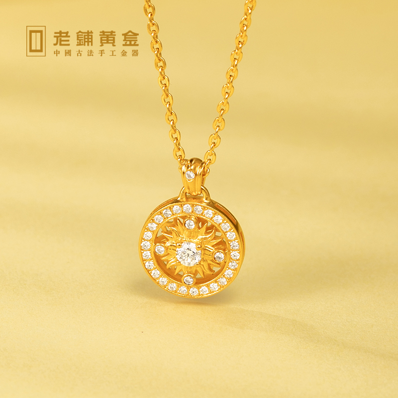 Old Paving Point Drilling Ancient Method Handmade Sunflower Lock Bone Chain Diamond Necklace Gold Pendant