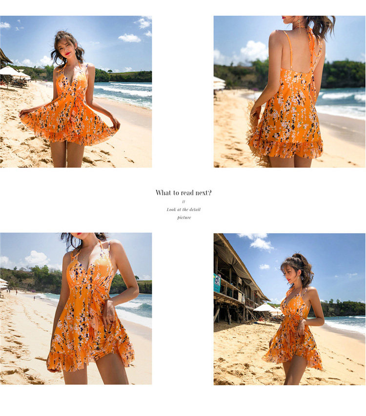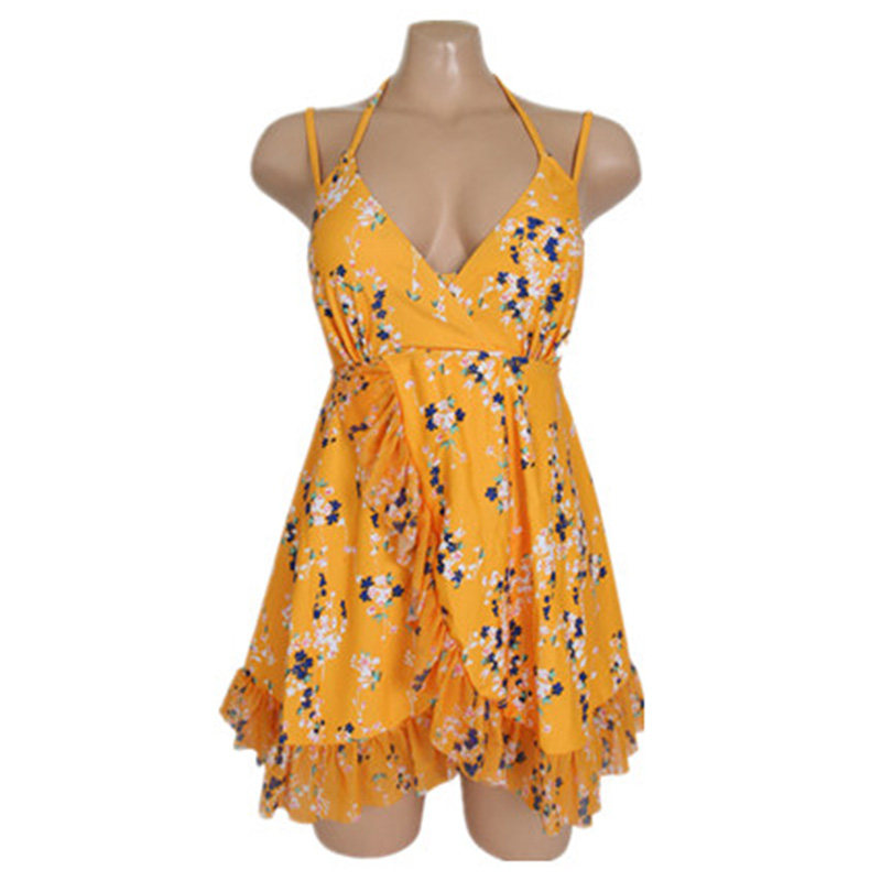 South Korean yellow crushed flower small breasts gather steel to thicken the pop-milk conservative display slim and flat angle skirt style even swimsuit spa