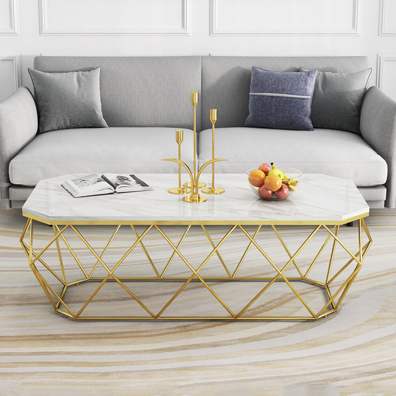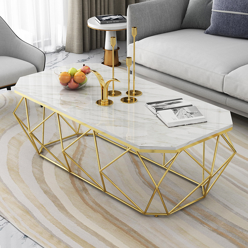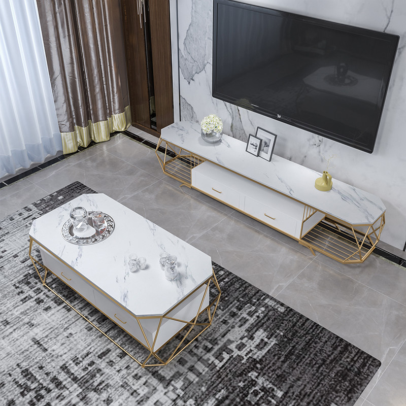 Nordic light luxury marble countertop coffee table rectangular living room TV cabinet combination simple glass modern small apartment
