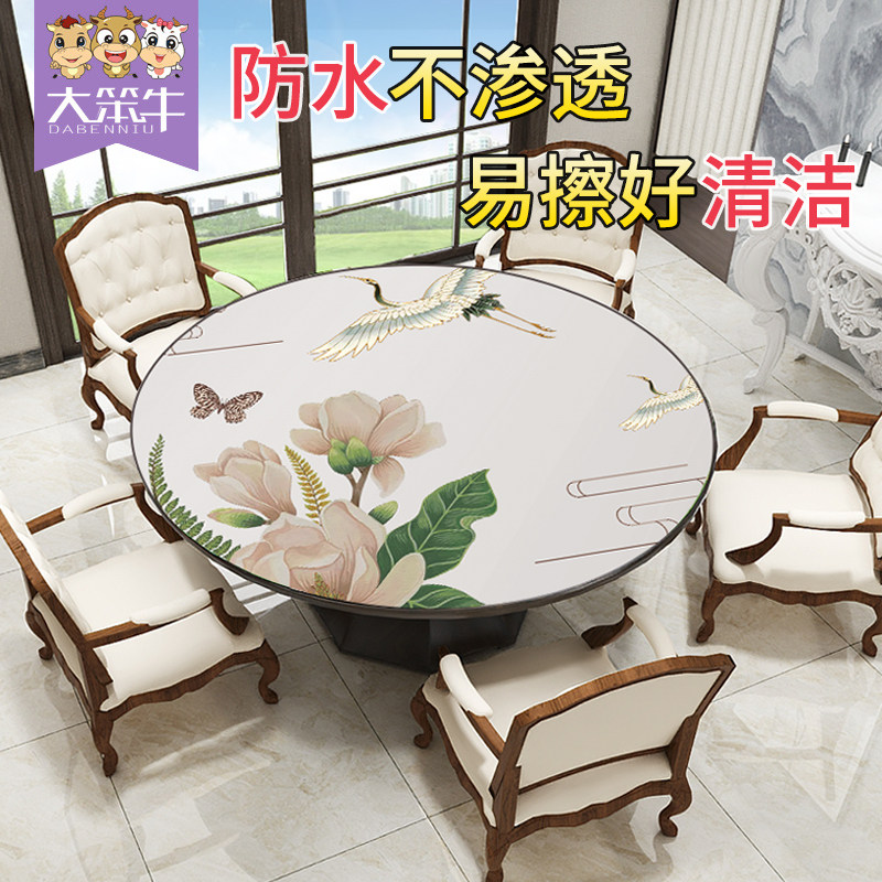 Roundtable tablemat new Chinese PVC soft glass tablemat tea pad tablecloth anti-hot waterproof oil and washing-free tablecloth