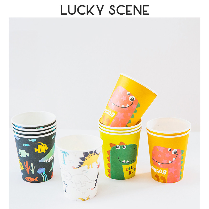 Marine large fish paper disk (one pack of 8) ocean large fish paper cup (one pack of 8) cute dinosaur mixed paperboard (one pack of 8) cute dinosaur paper cups (one pack of 8) dinosaur park paper disk (one pack of 8