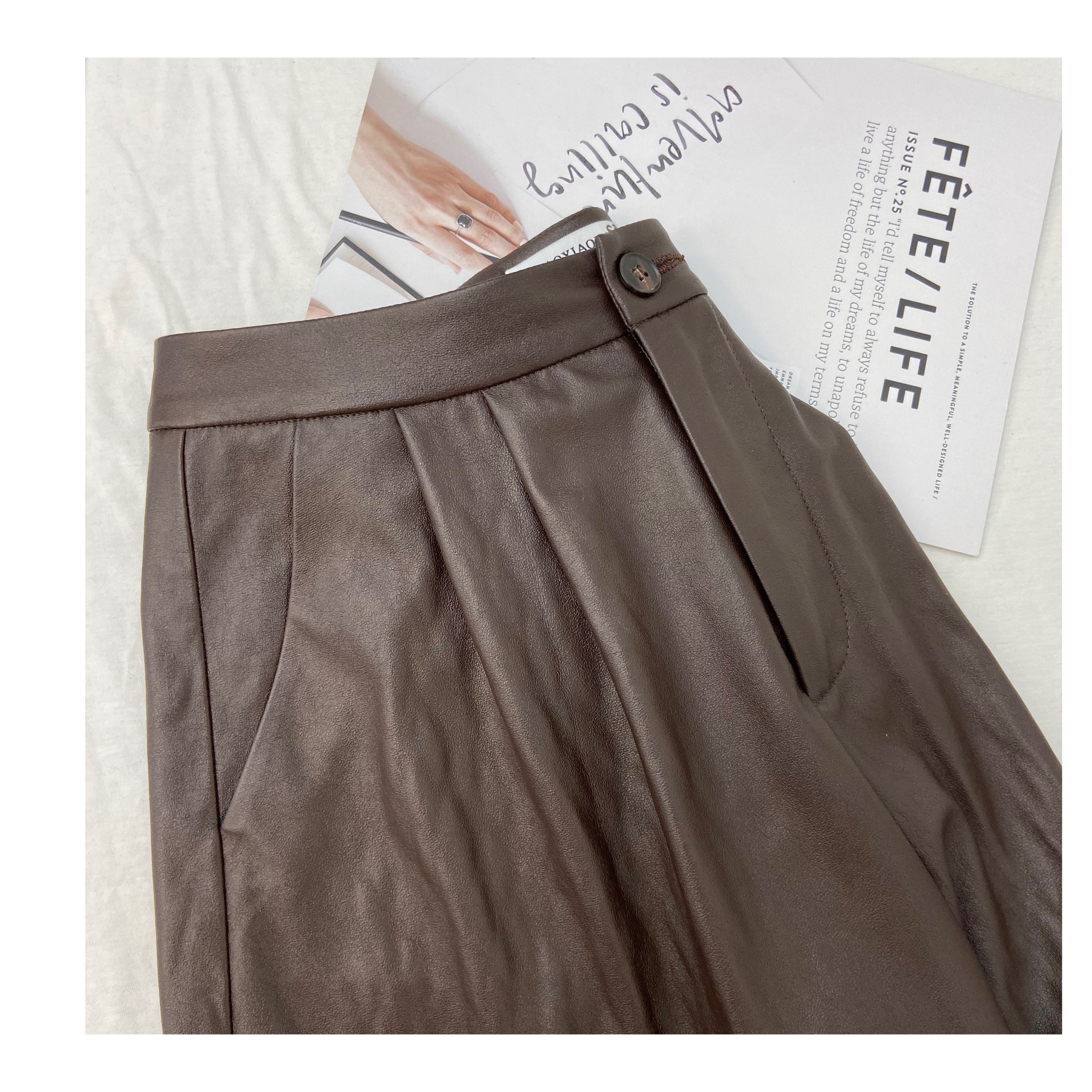 Small Lagenuine Fake Skin can't see the trendy 50% pants leather shorts brown big pants tube loose with high waist and thin foreign pie