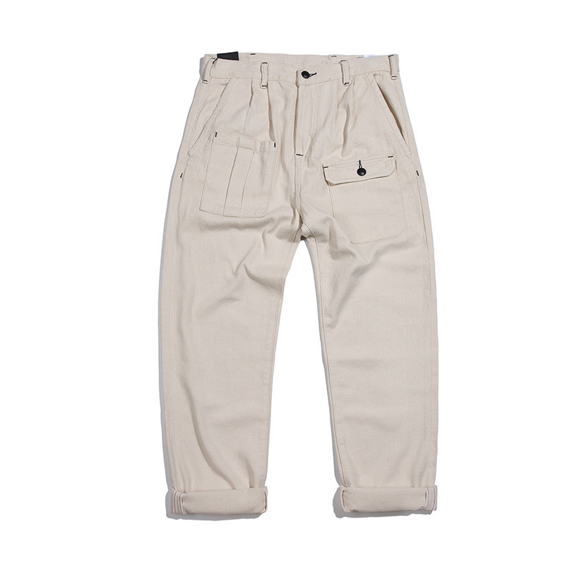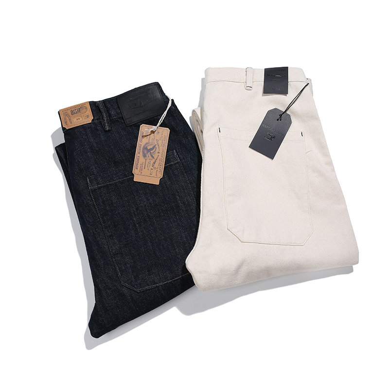 Autumn Winter New American Retro Tooling Denim Casual Pants Day Series Click White Long Pants Tooling Heavy Lbs Long Pants Men