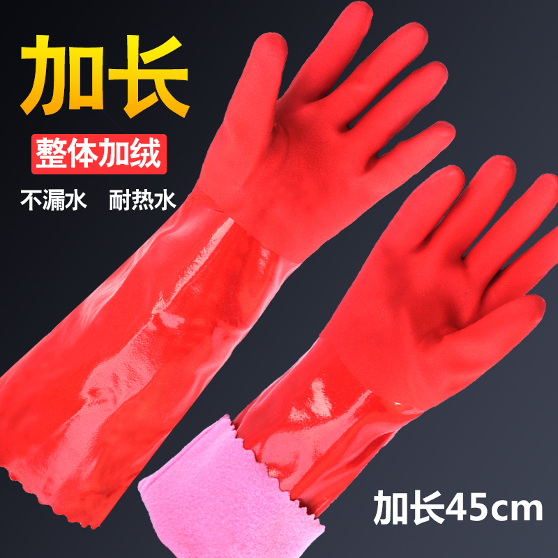 Dishwashing gloves gapped waterproof rubber rubber sheet Winter warm non-slip with rubber abrasion resistant and durable woman housewash clothes