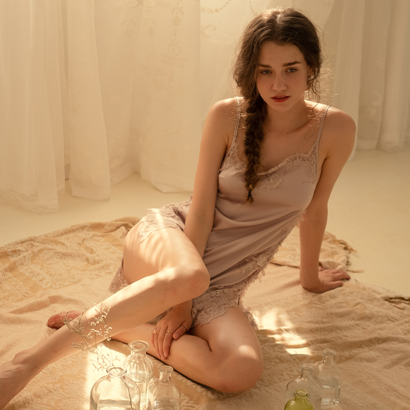 Sexy Sleepwear Woman Autumn Winter Lace Harness Sleeping Skirt Open Fork Seductive Lingerie Bed Short Skirt Can Be Worn Out