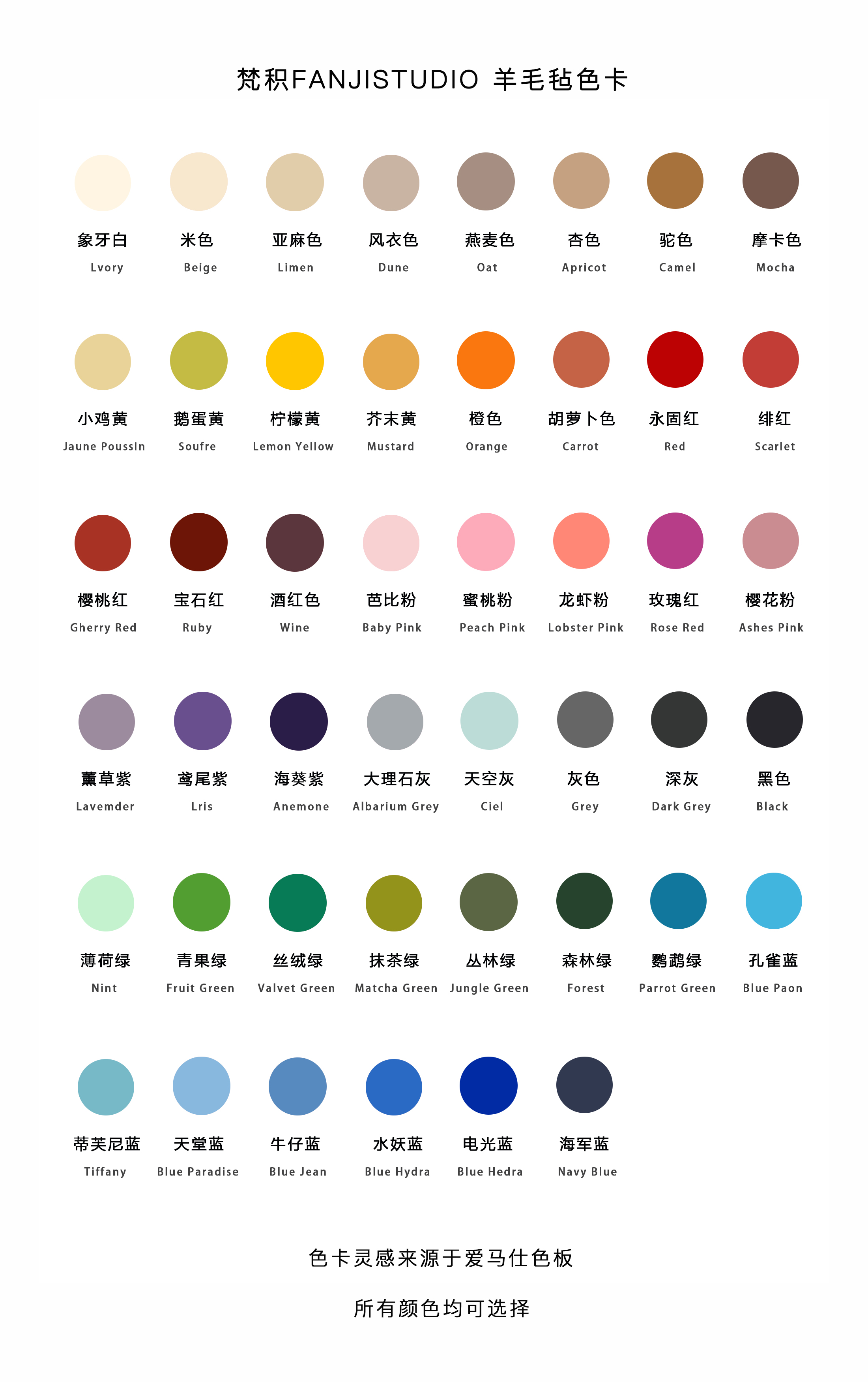 Trench coat color-FANJI studio Fanji wool felt color card 19