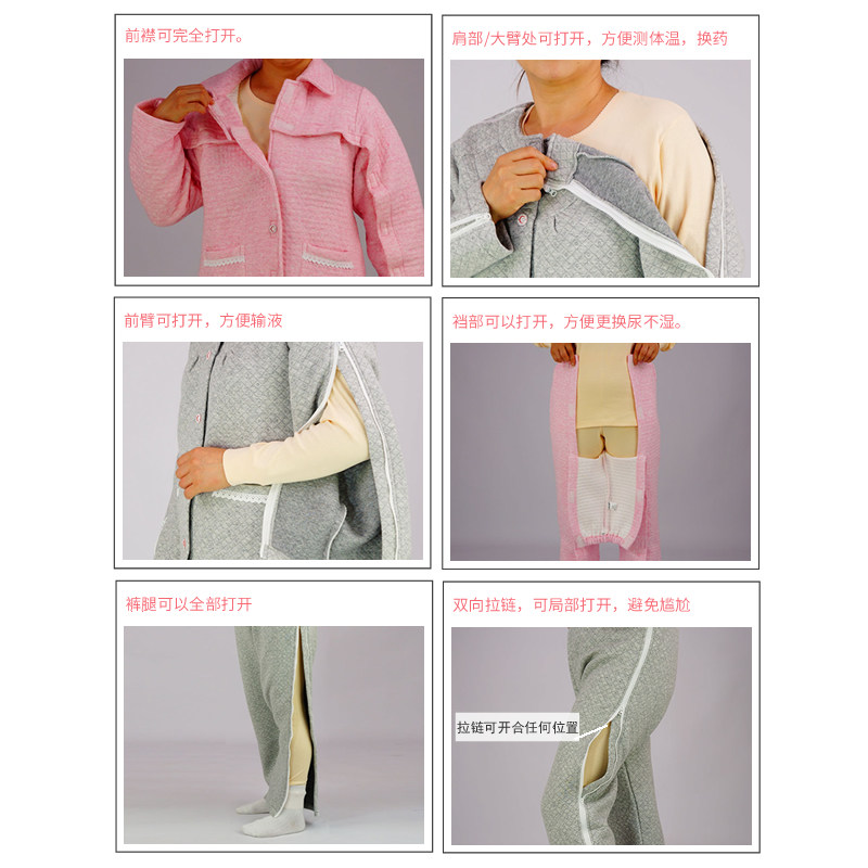 Autumn Winter Care Clothing Pajamas Palate Patient Hemiplegia Fracture Patient Bed Woman Sick sick Number clothes Home Spring and autumn pyjamas