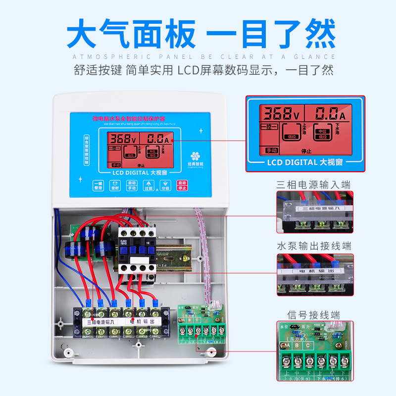 380V three-phase full intelligent fully automatic water pump controller tank water tower water level switch liquid level protection controller