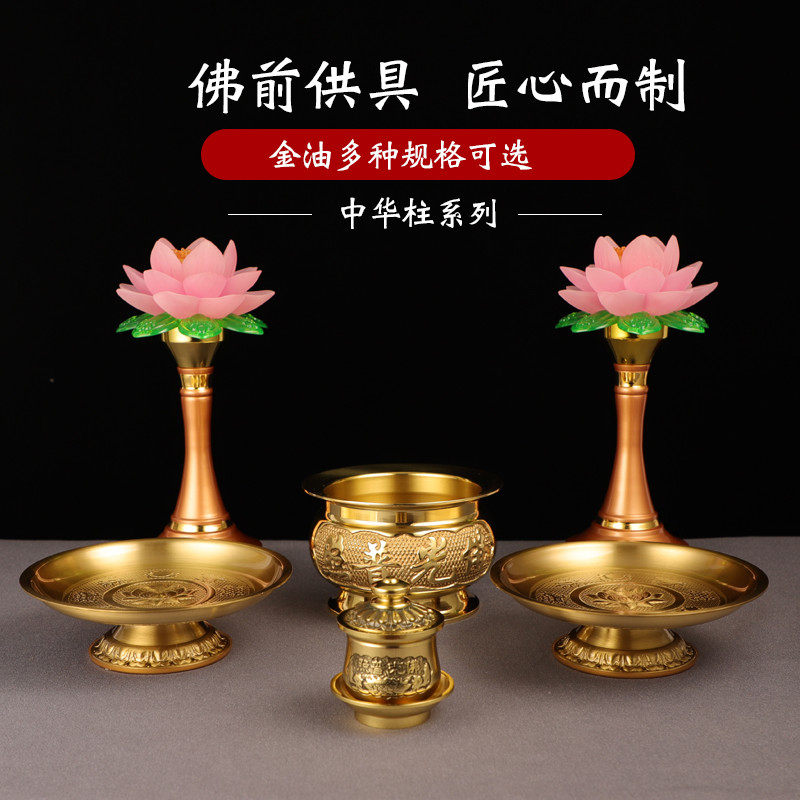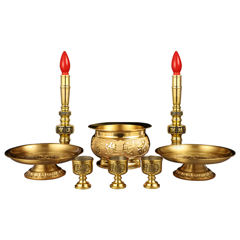 Big edge incense burner set copper fruit plate water cup lucky wine glass led candle lamp dedicated to home full set of Buddha temple dedicated to Buddha