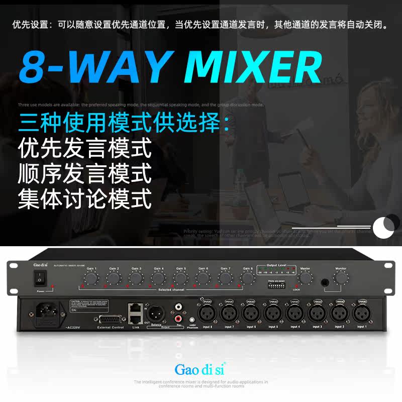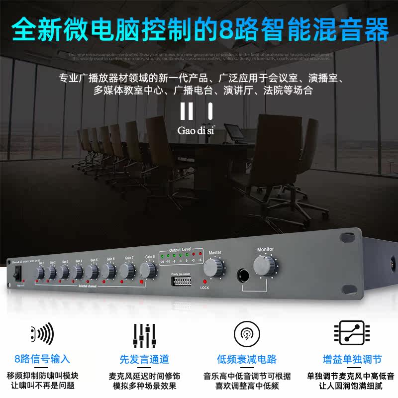 gaodisi professional intelligent 8-way conference microphone audio mixer instrumental home k song kalaok anti-howl called ktv effectors mixers tuning speech stage show wedding bar school meeting