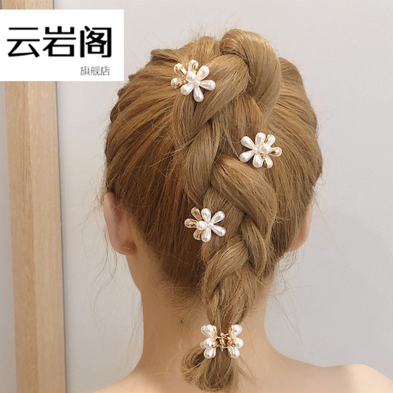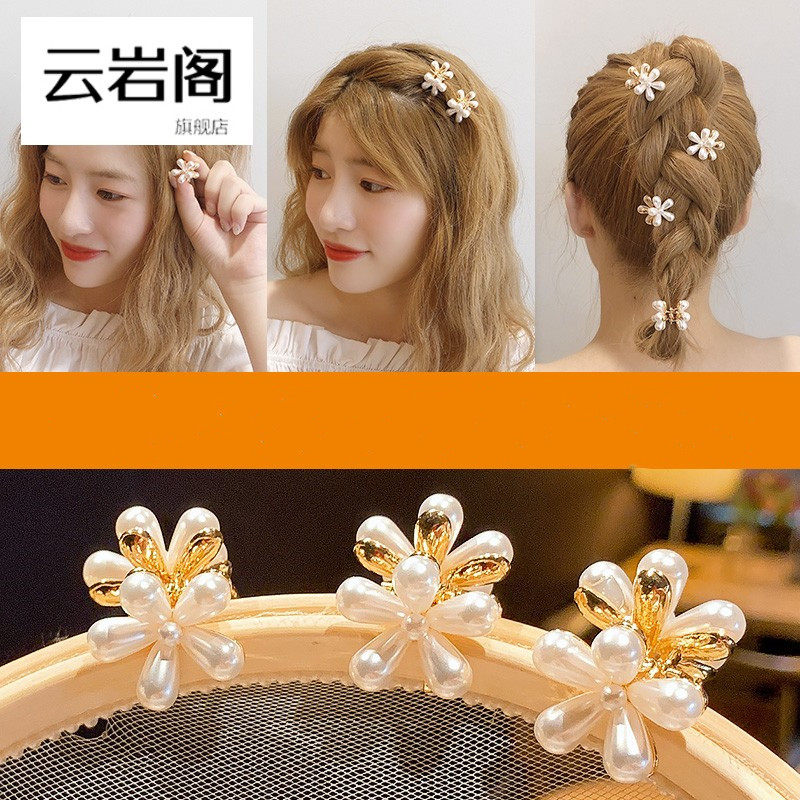 Camellia petals A row of pearls Snowflake large pearls Two flowers color double star imitation pearls 2 (side clip pair) Small claws 5-piece set Swan Blue diamond Dark blue bow Silver gray bow