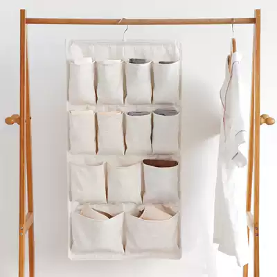 Natural cotton linen fabric double-sided multi-pocket large-capacity underwear socks storage hanging bag wardrobe storage