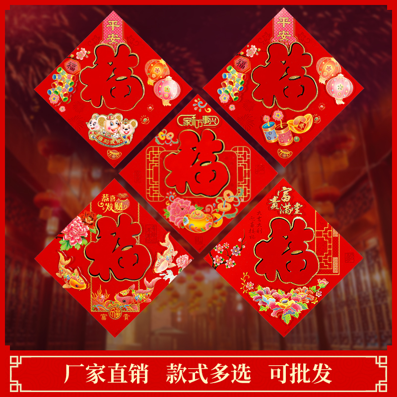2021 Spring Festival Rat Year Zodiac Paper-cut three-dimensional blessing word door stickers Flocking Wall Stickers Housewarming New Year Stickers New Year Blessing Word