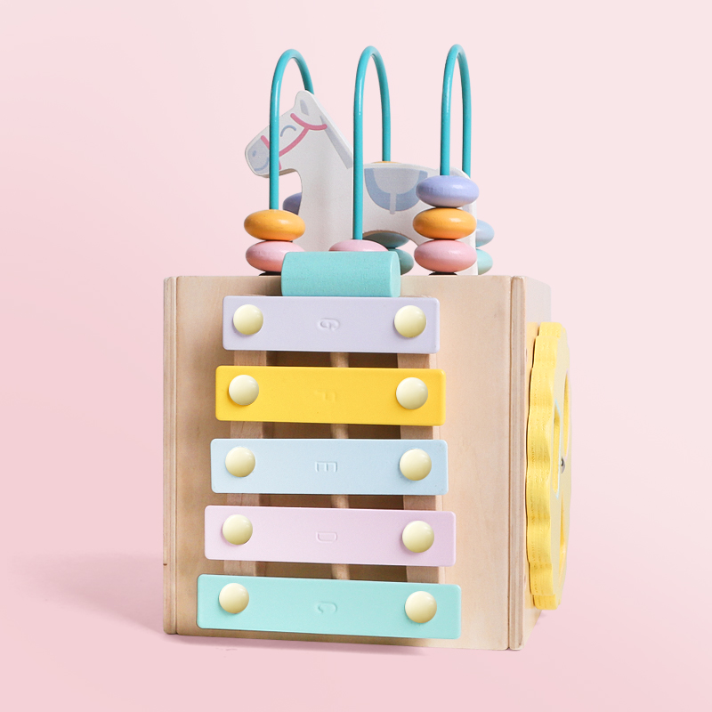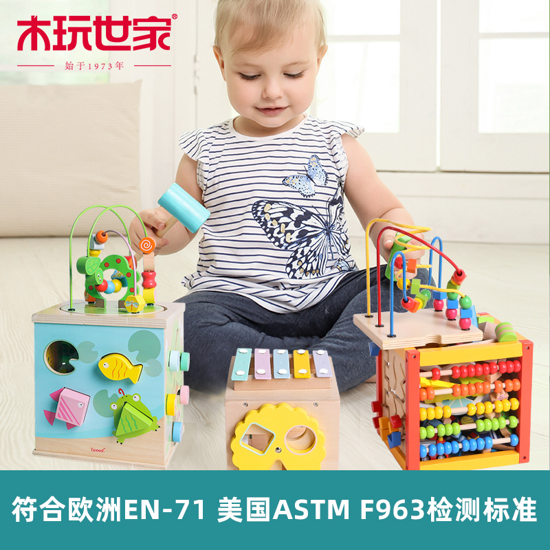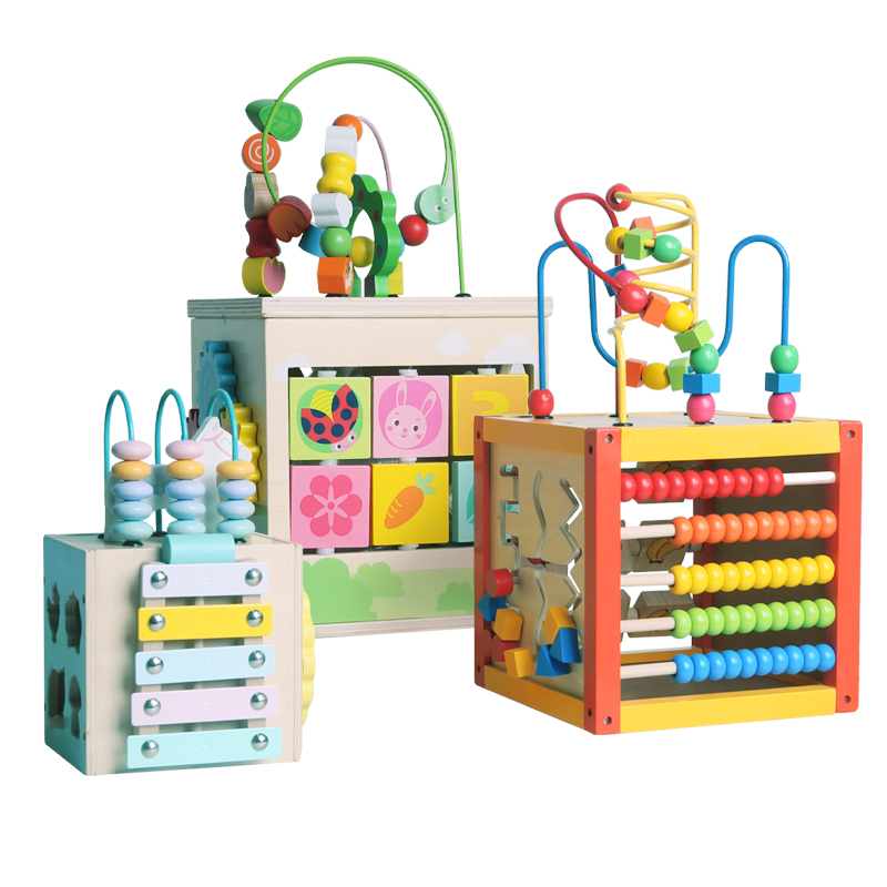 Wood play family children around the bead treasure chest 1-3 years old baby puzzle early teaching toys multi-functional bead toy box