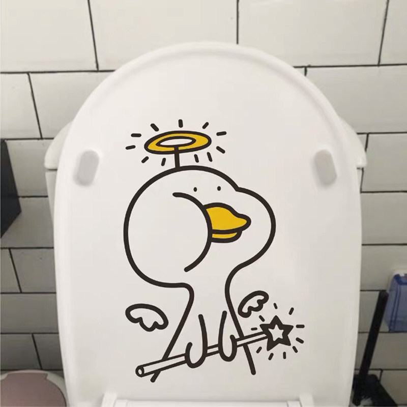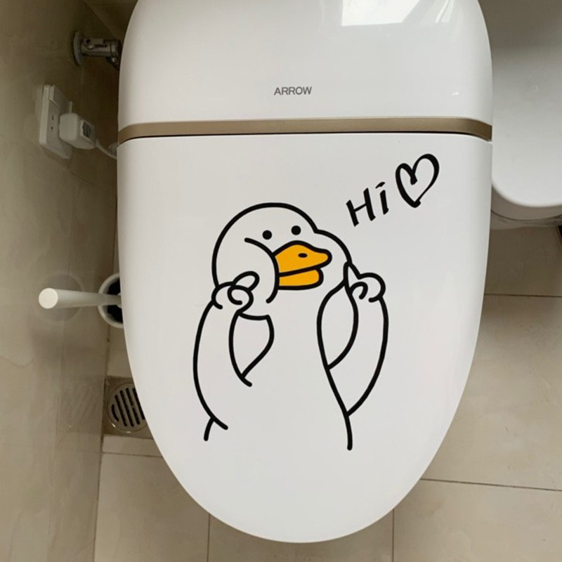 Toilet Lid Stickers Fumble Tone Net Red Cartoon Refueling Duck Home Decoration Makeup Room Bathroom Waterproof Wall Sticker