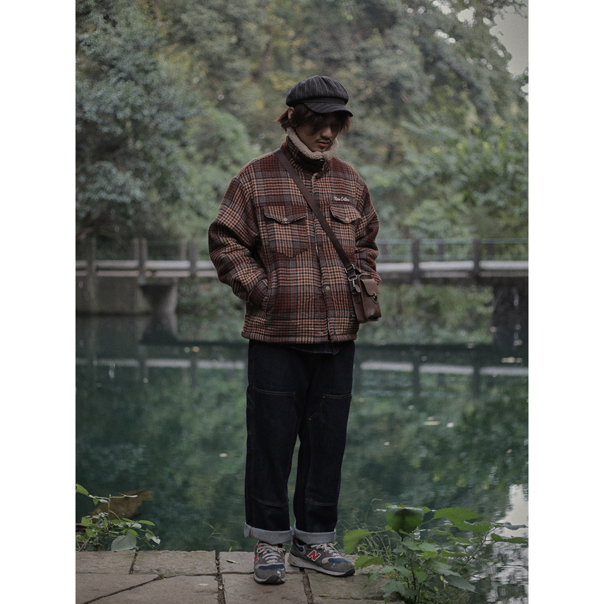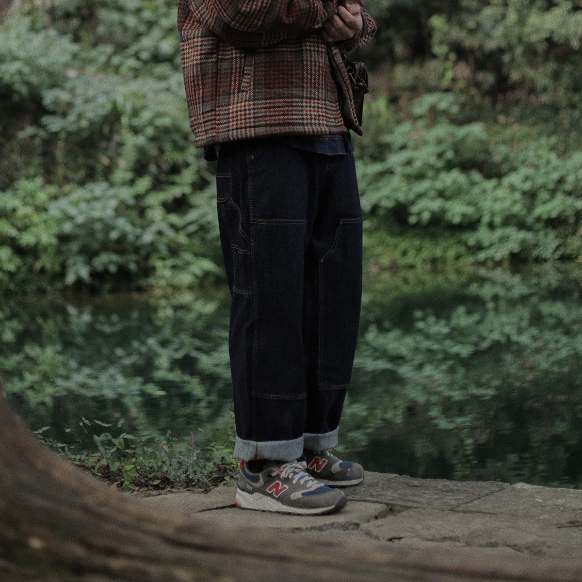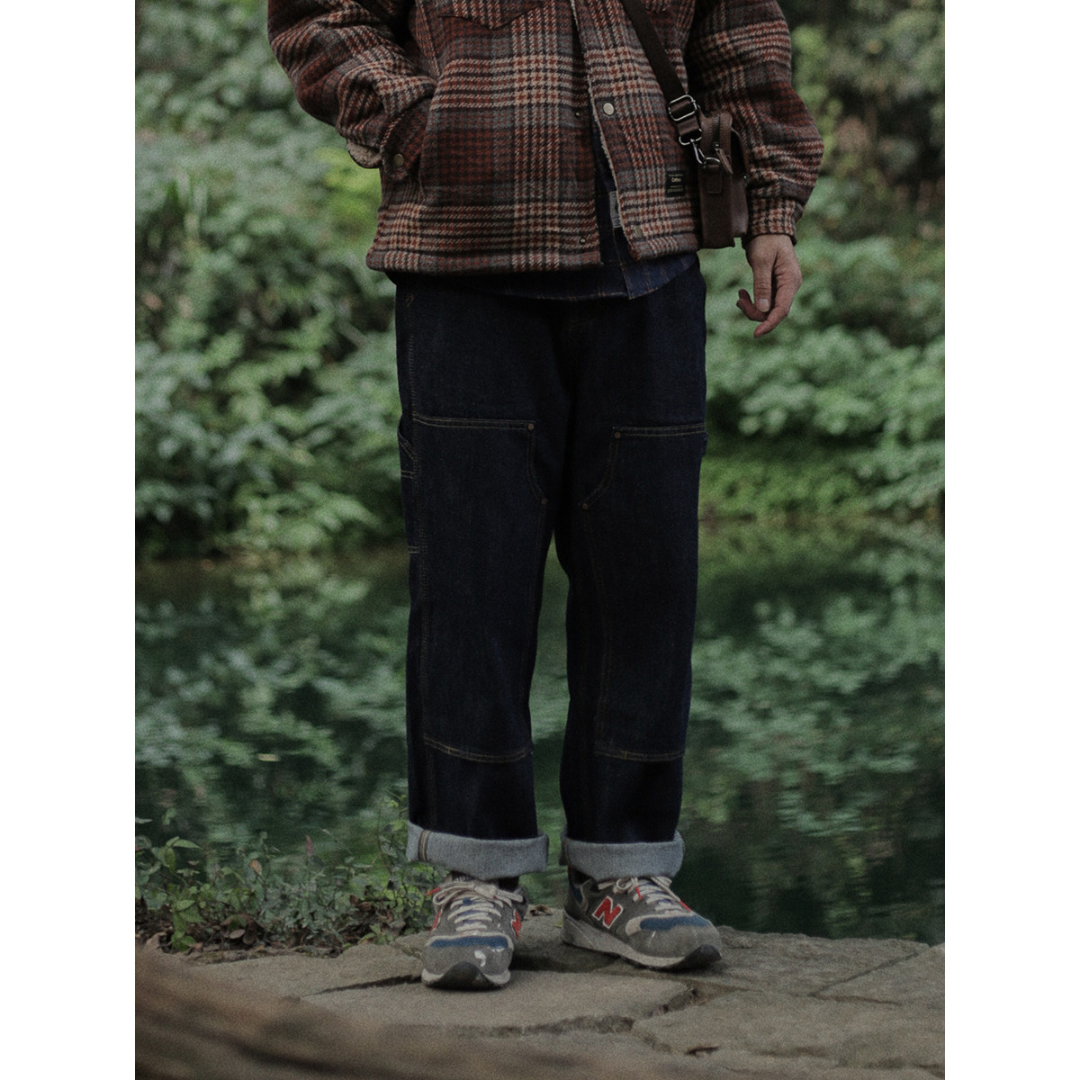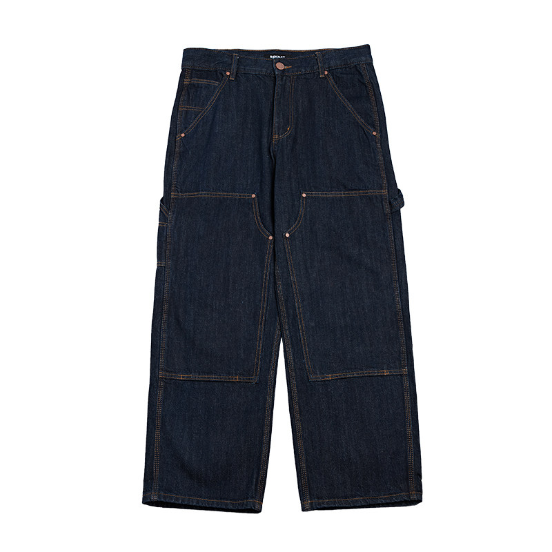 Crisis youth Retro series bright line primary color tooling jeans for men and women Japanese loose straight casual long pants