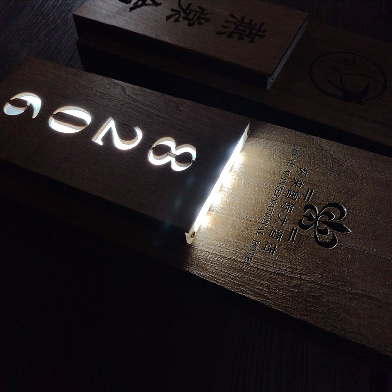 Solid wood creative Chinese number sign hotel box room room B&B luminous house number LED light customization