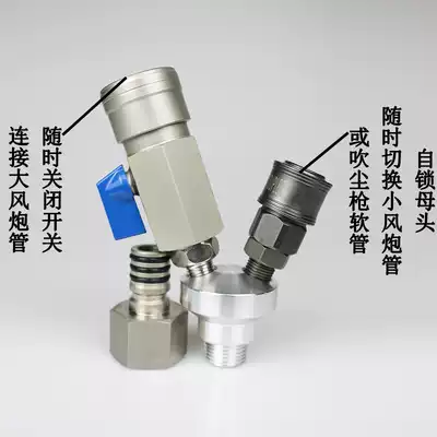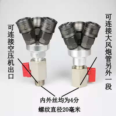 Large and small air compressor outlet all-steel single valve large wind gun tube double male screw joint size pneumatic wrench tube mixing two-way tips