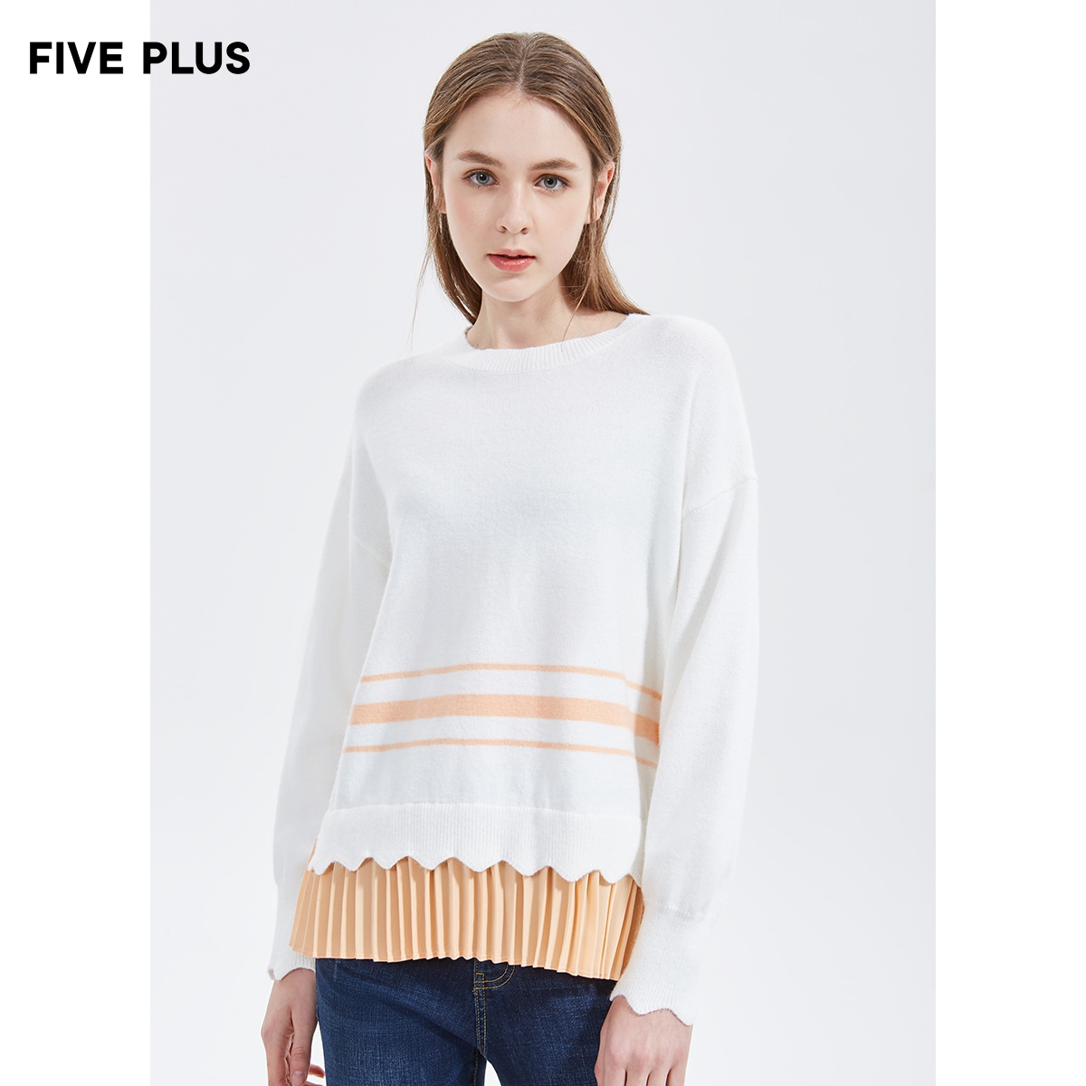 FIVE PLUS women's spring striped sweater women's loose long-sleeved pullover tide pleated stitching