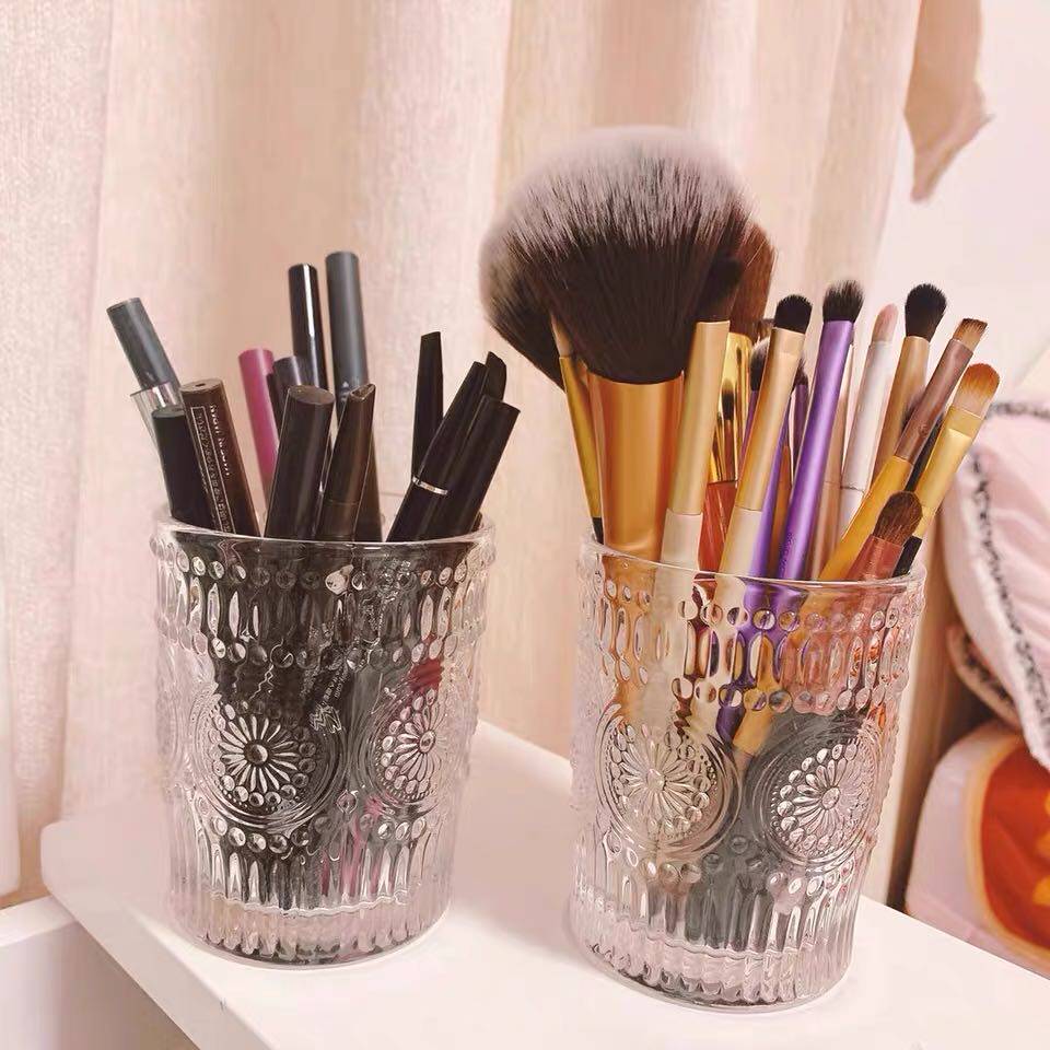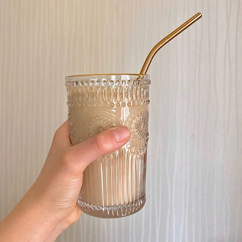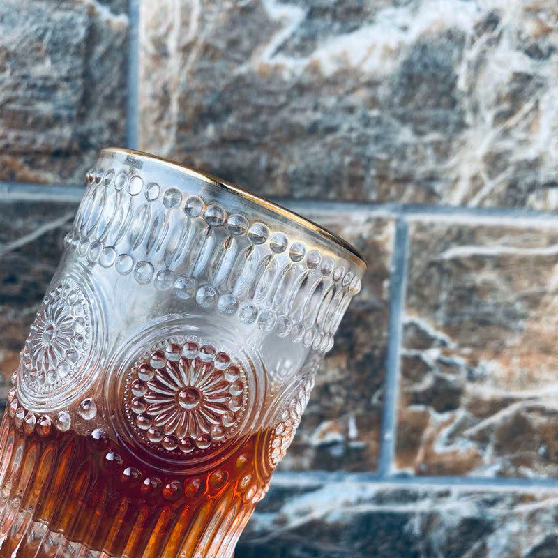 ins Nordic wind retro ancient relief Phnom Penh glass cup round sunflower water cup cold drinks cup milk tea shop juice cup