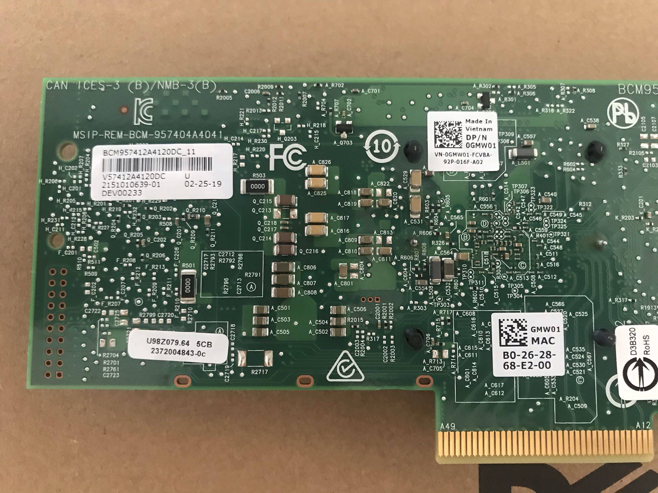 Dell Dell BCM57412 0GMW01 V58412A4120DC dual-port 10 Gigabit network card 10G
