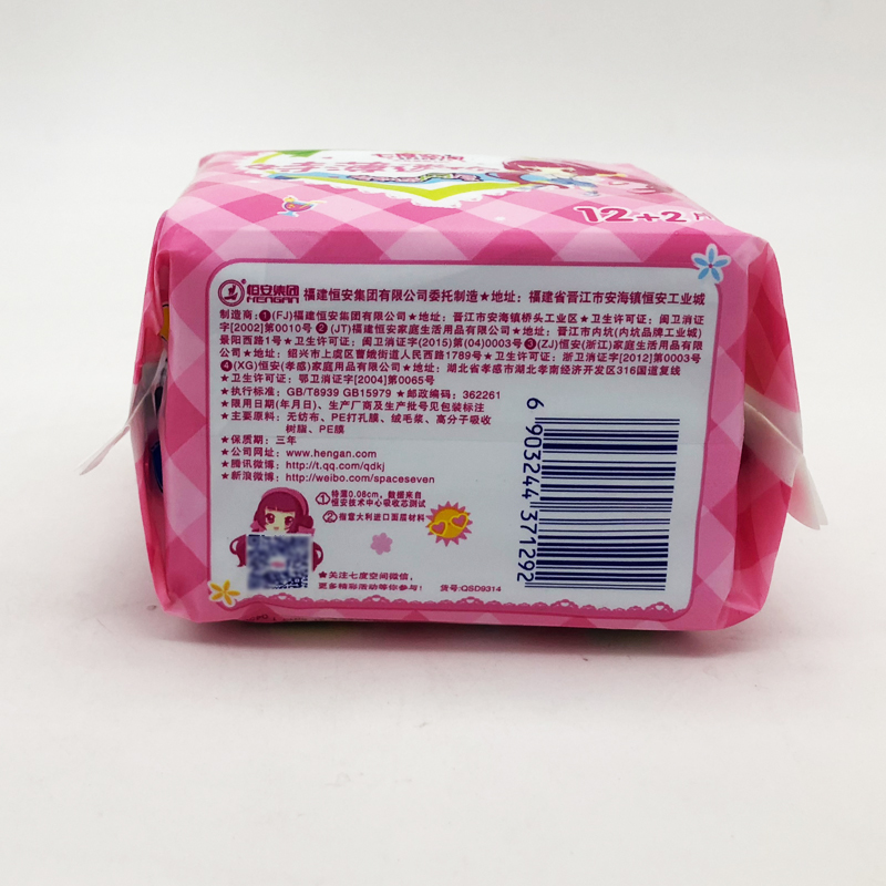 Seven-degree space QSD9314 Tthin silk Mesh Face Mini Sanitary Cotton Pad 180mm6 Pack 84 pieces