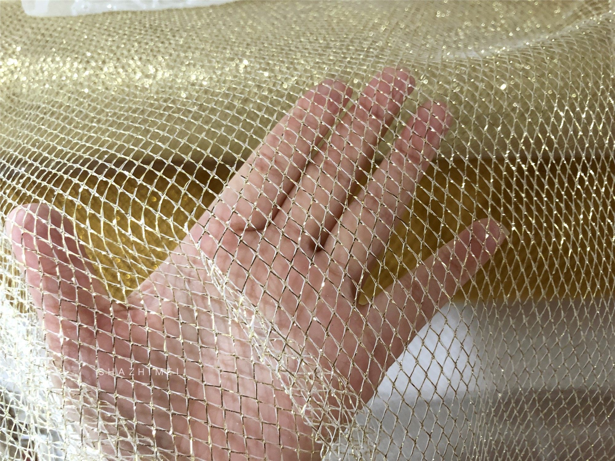 Gold Silver Thread Diamond Shape Mesh Mesh Hard Yarn Designer Fabric Large Eye Mesh Fabric Large Mesh Yarn