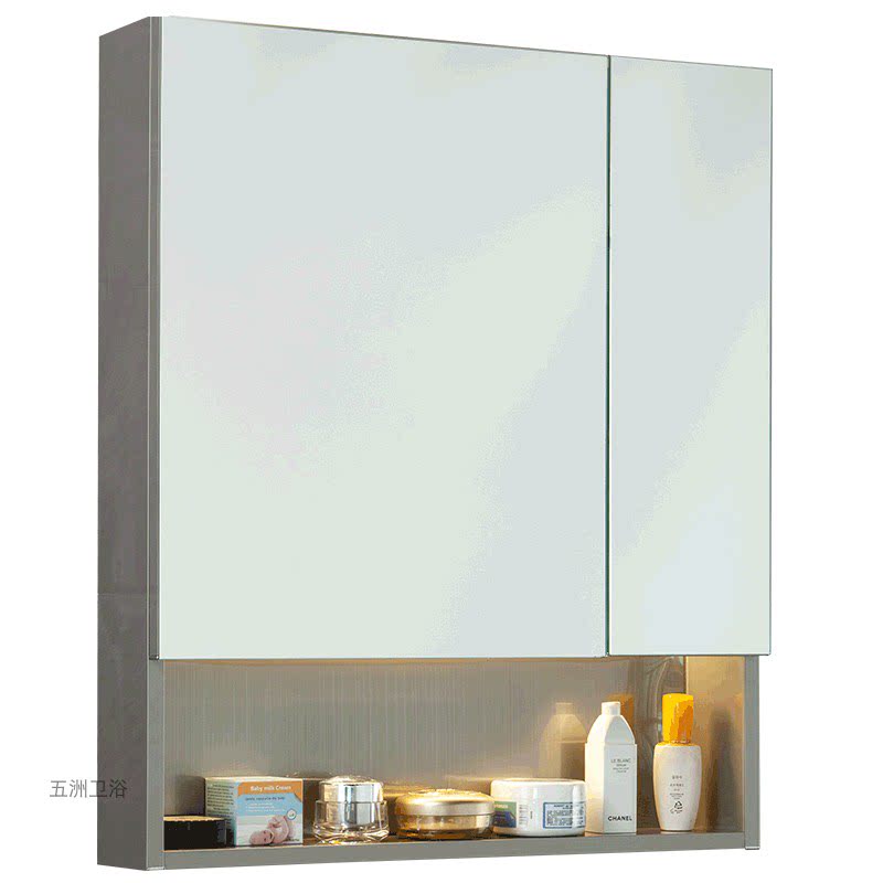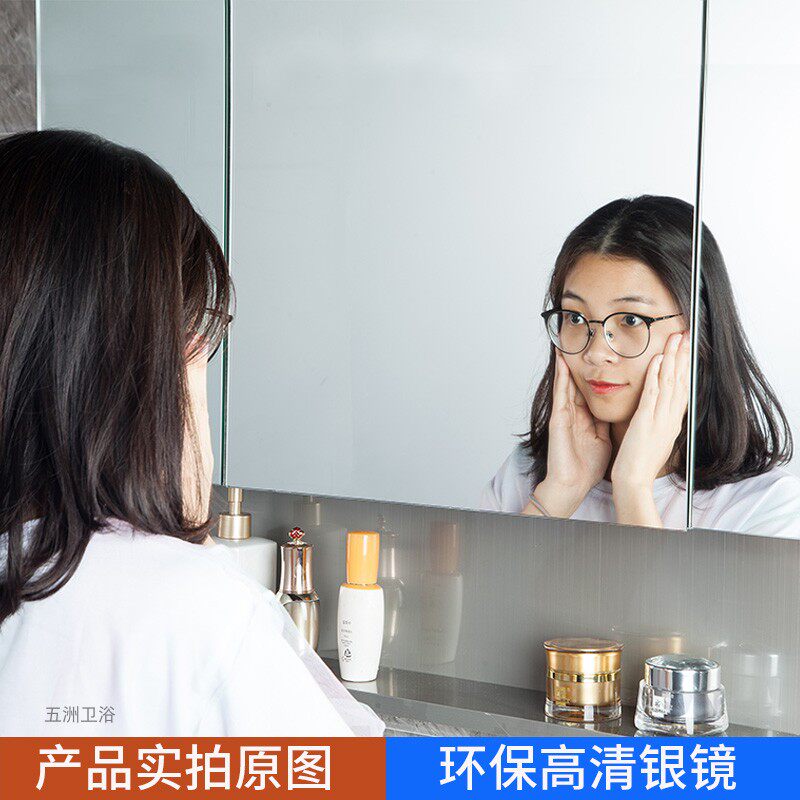 Stainless steel bathroom mirror cabinet separately mounted wall-style makeup room mirror with lamp with lamp frame small household mirror customization