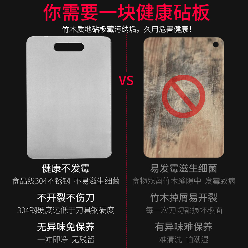 Germany 304 stainless steel cut vegetable fruit chopping block antibacterial and mildew-proof rolling face and face-facing brick plate home large number thickened