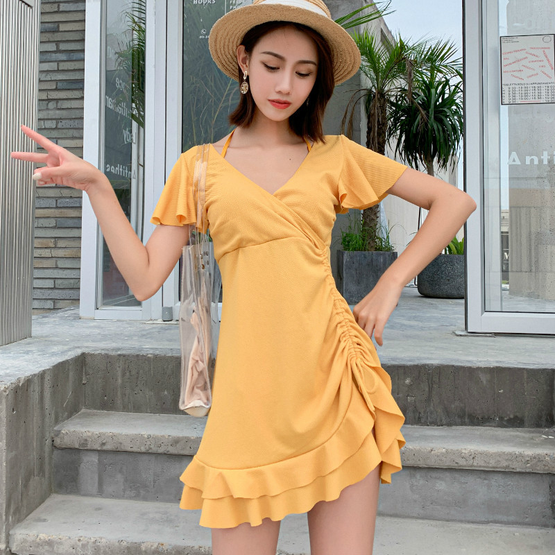 2020 new spa swimsuit women's two style dress-style conservative South Korea's wines to cover the fairy Fan