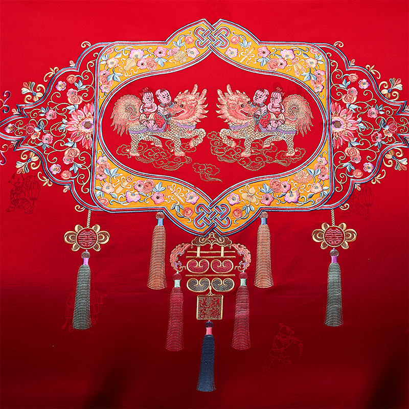 High-end luxury Chinese wedding bedding four-piece set High-end embroidery flower wedding bed set Wedding celebration quilt cover