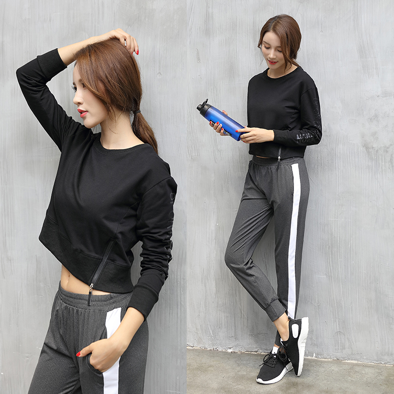 Autumn and winter yoga clothes long-sleeved suit women's loose sexy sports fitness clothes gym running clothes beginners