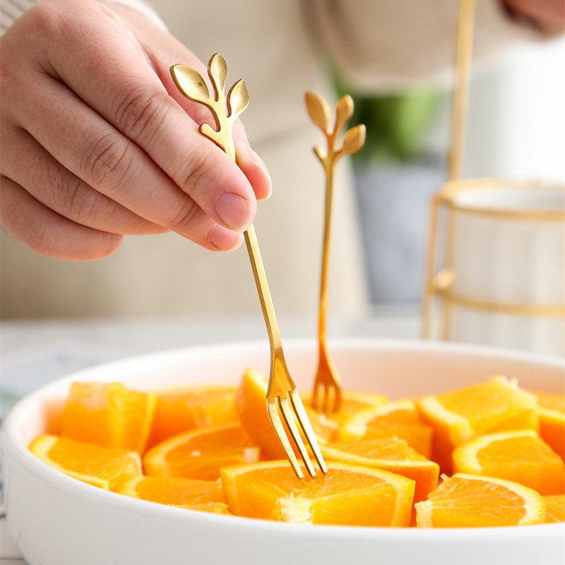 Nordic Fruit Fork Signature Fruit Insert Leaves Sweet Pitchforks Creative Coffee Spoon Home Fruit Fork Ice Cream