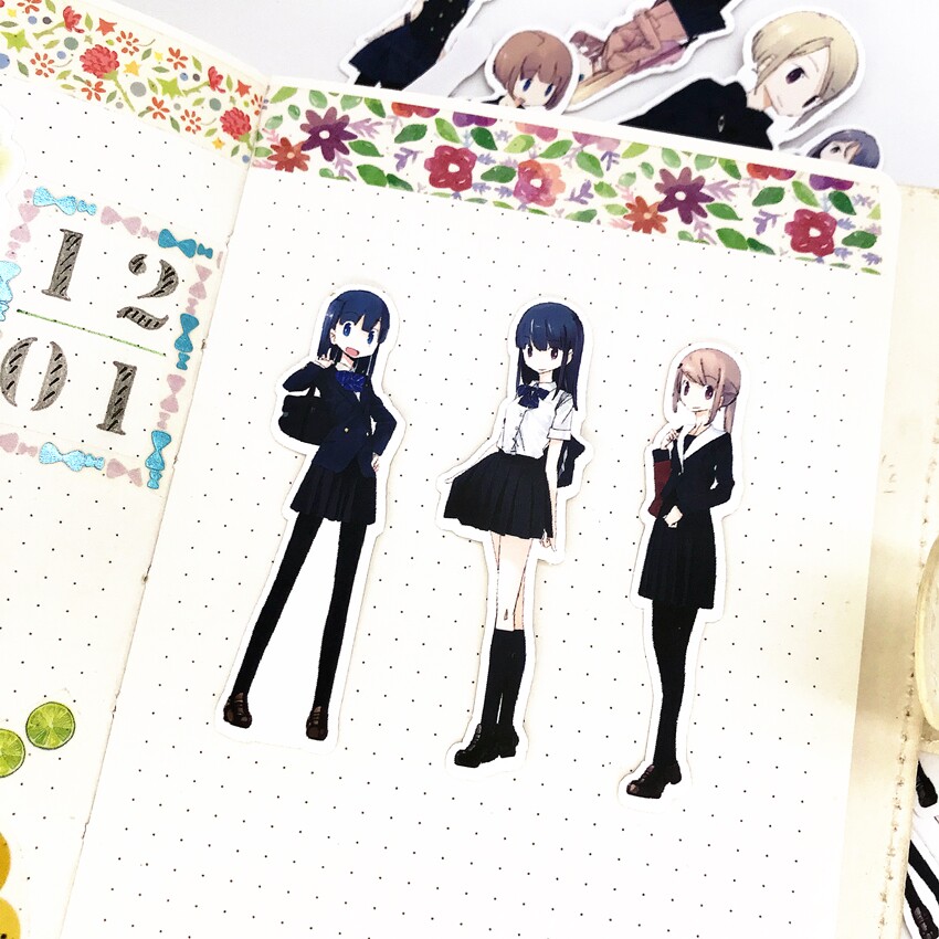 Hand account stickers Japanese school uniform girls stickers homemade hand account girl uniform stickers diary decoration stickers 32 pieces