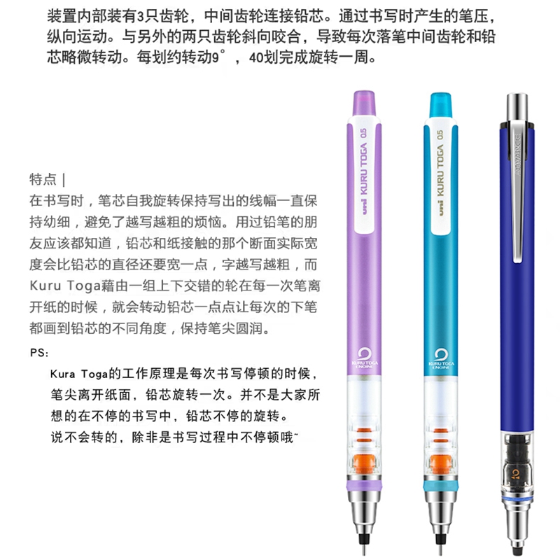 Japan stationery uni Mitsubishi M5-450 mechanical pencil kurutoga lead core automatic rotation twice 0 5mm Primary school students special writing not easy to break the core painting M5-559 Import