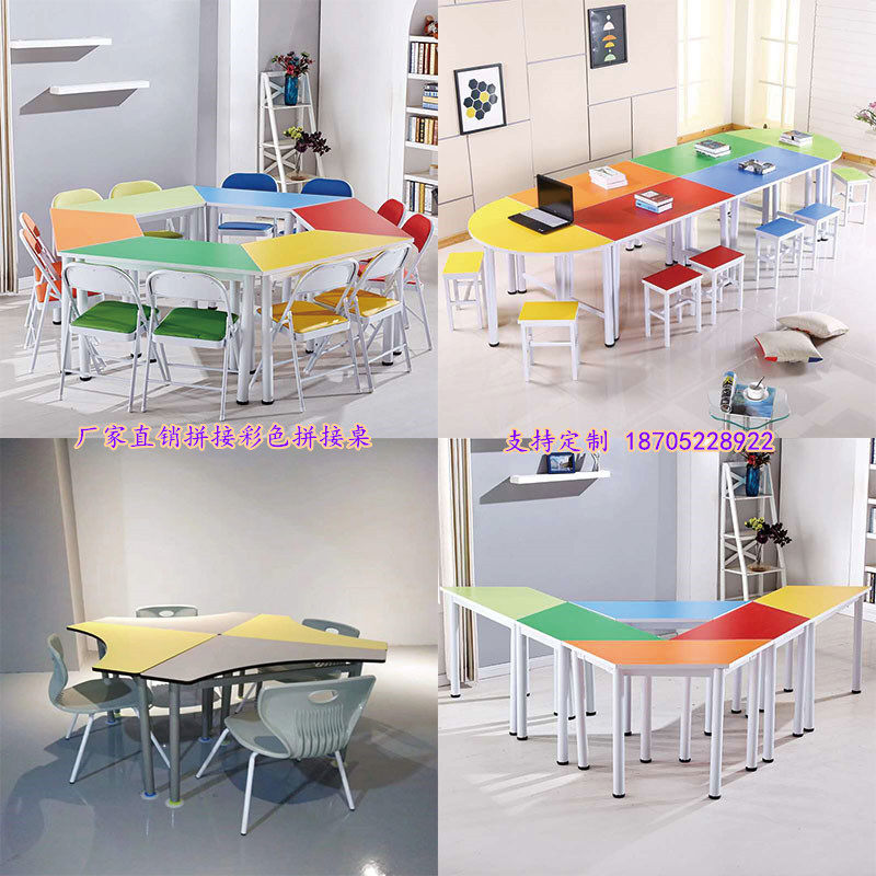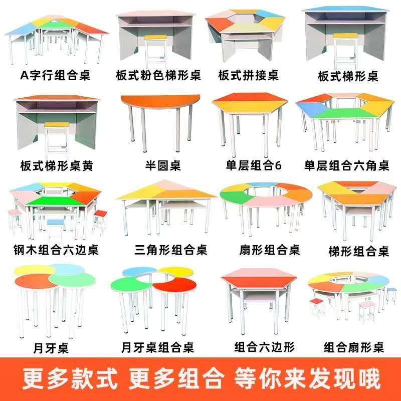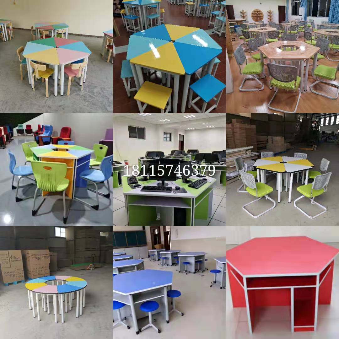 Hexagonal table Tutoring reading training table Color stitching Hexagonal table Triangle table Trapezoidal table Computer table Desks and chairs