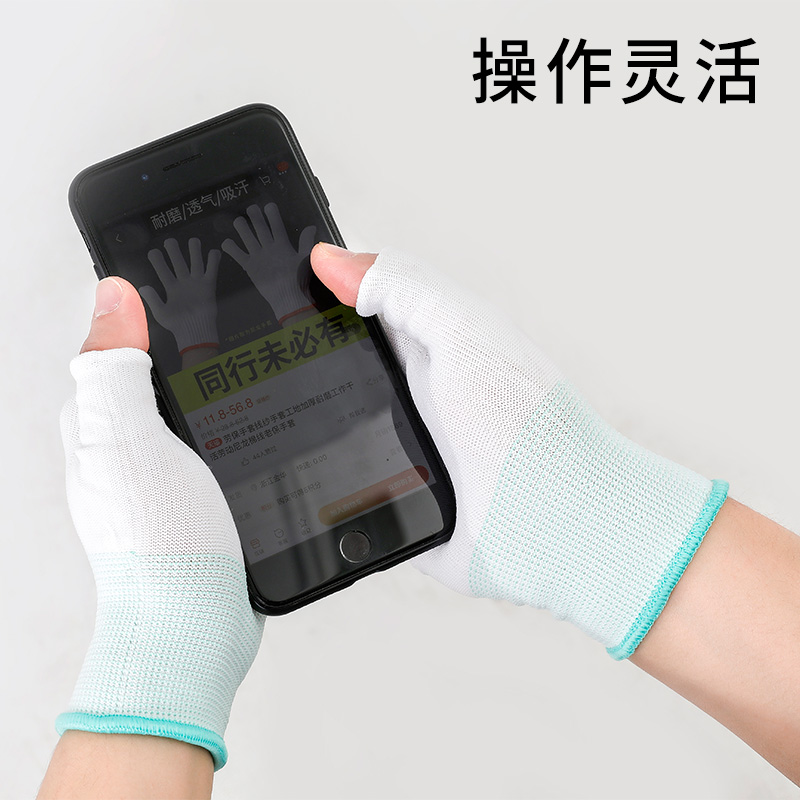 Gloves Lauder abrasion resistant working cloth anti-slip female, breathable semi-finger ladies' thin anti-static male worksite work