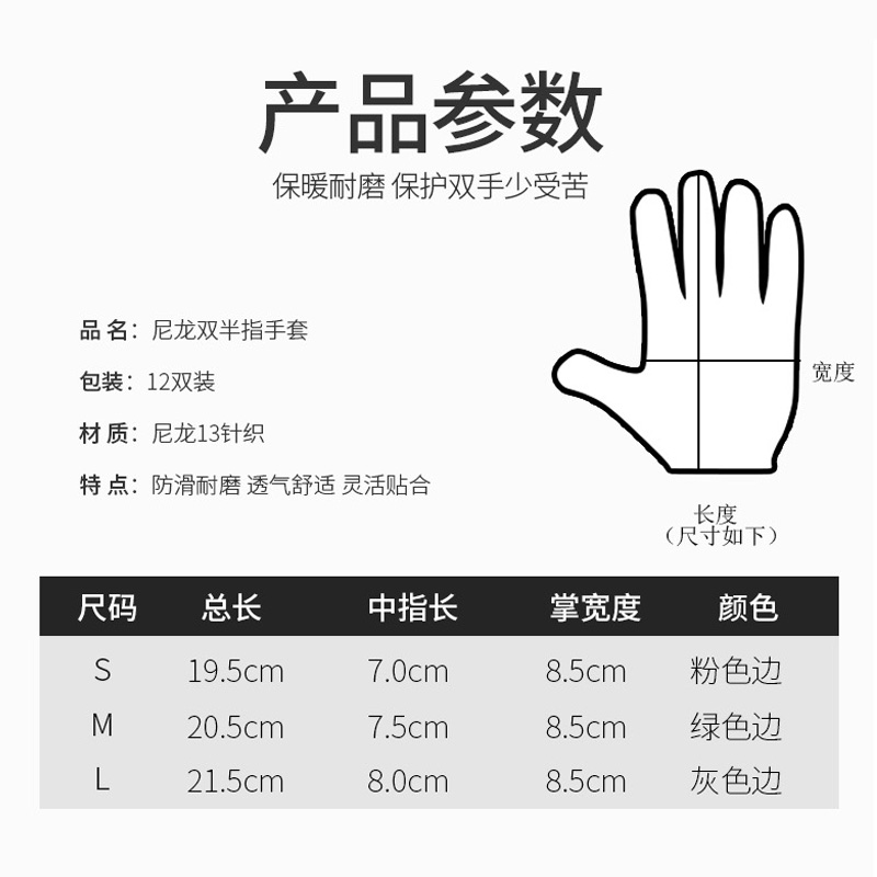 Nylon double half finger glove black (10 double mounted) nylon double half finger glove white (10 double fit) nylon double half finger glove white (20 double fit) - Economy Applicable strong push nylon glove black