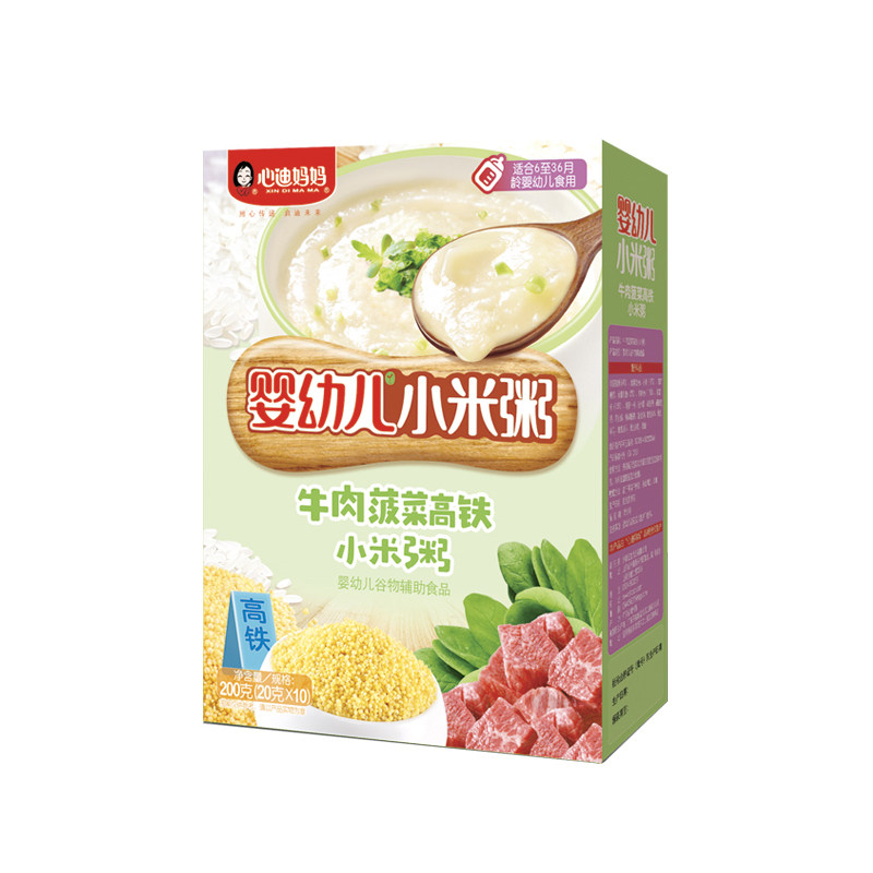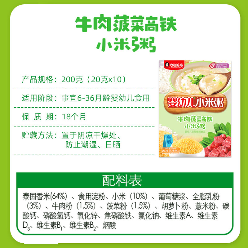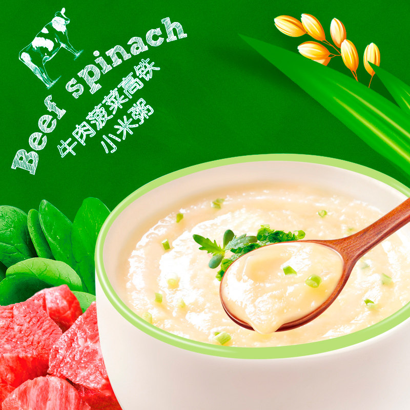 Mushroom Chicken Nutritious Porridge Cod Fish Nutrition Small Rice Congee Beef Spinach High Speed Rail Small Rice Porridge AD Calcium Vegetable Fish Nutrient Congee Beef Carrots Cubes Vitamins Small Rice Congee Beef rice Calcium Iron Zinc Small Rice Congee 2 Boxed (Taste Preparation