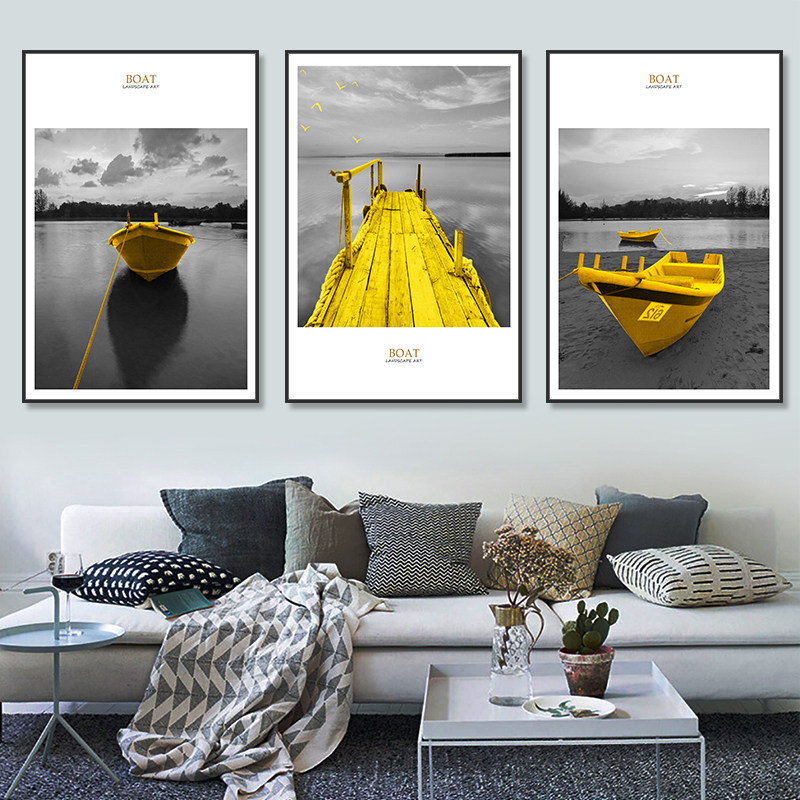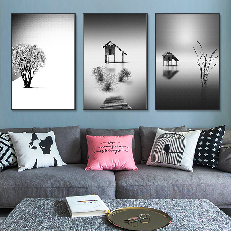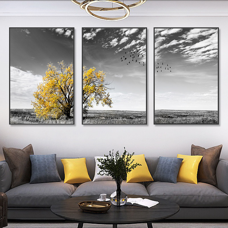 Living room decoration painting Nordic sofa background wall hanging painting light luxury bedroom modern simple dining room atmosphere triple hanging painting