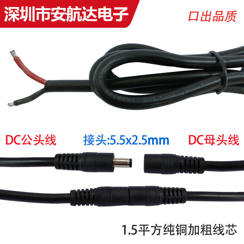 High power DC DC5 5-2 5 power cord 19V24V connection wire 1 5 square full copper DC male head line