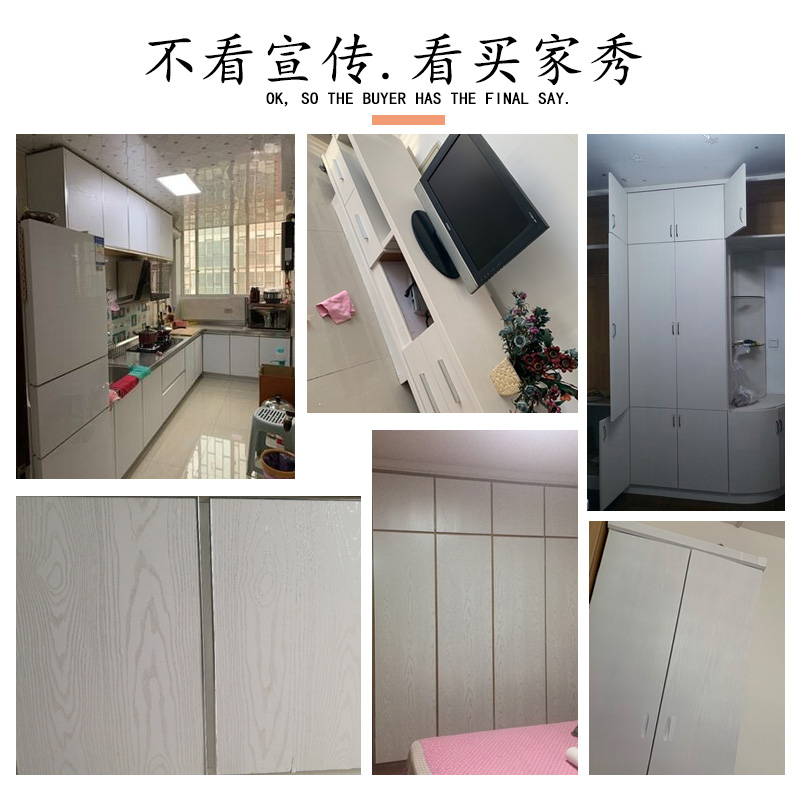 Thickened Waterproof Rice White Pure Vegetarian color wood grain Home Furniture Renovation Stickers Self-Adhesive Book Desktop Old Door Clothes Overall Closet Cupboard Nordic