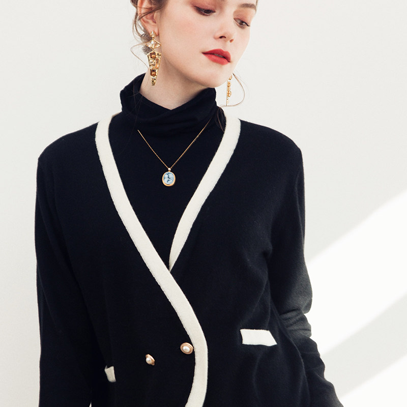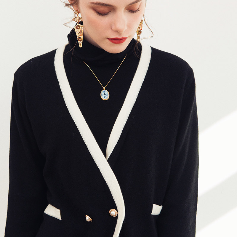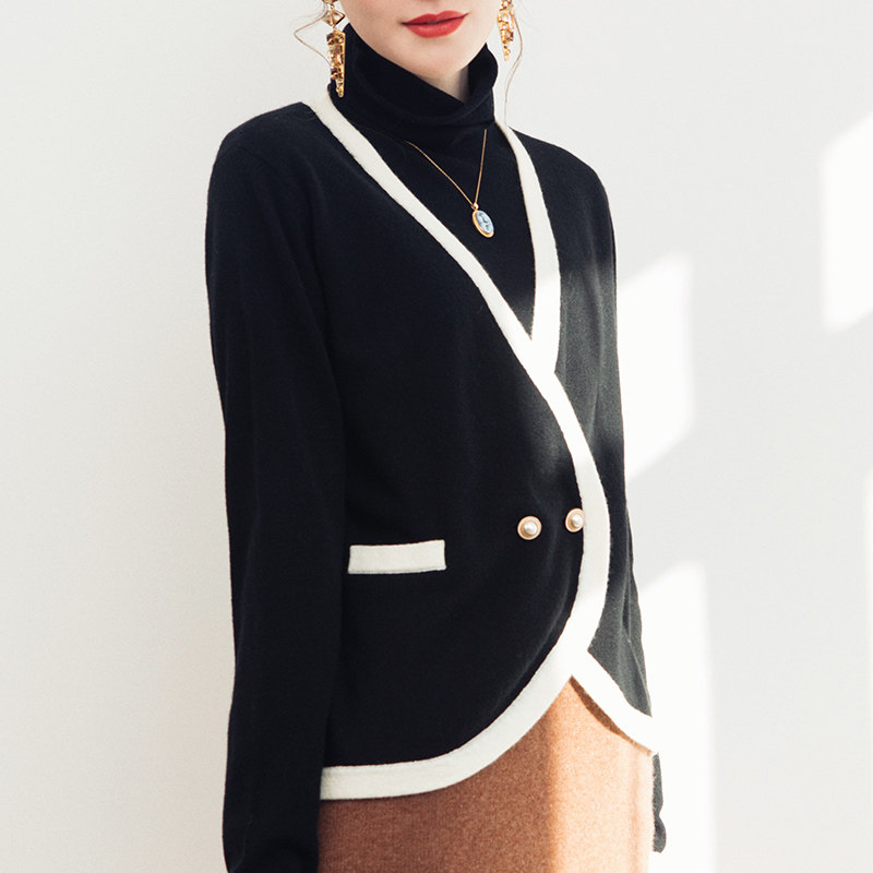 AI early spring light luxury small fragrance style cashmere cardigan French retro college style cashmere knitted jacket women