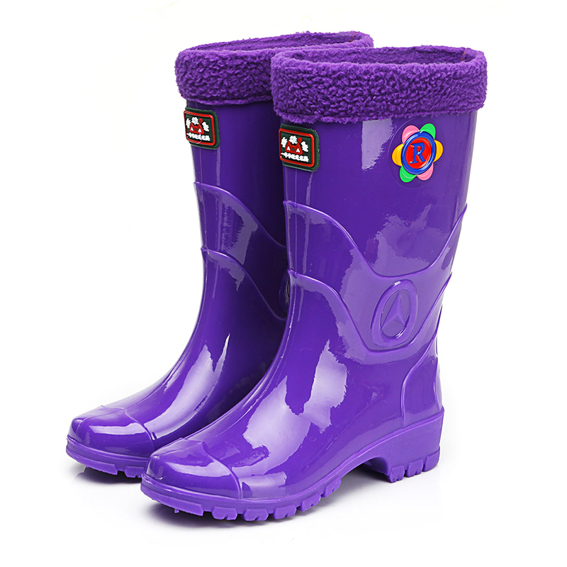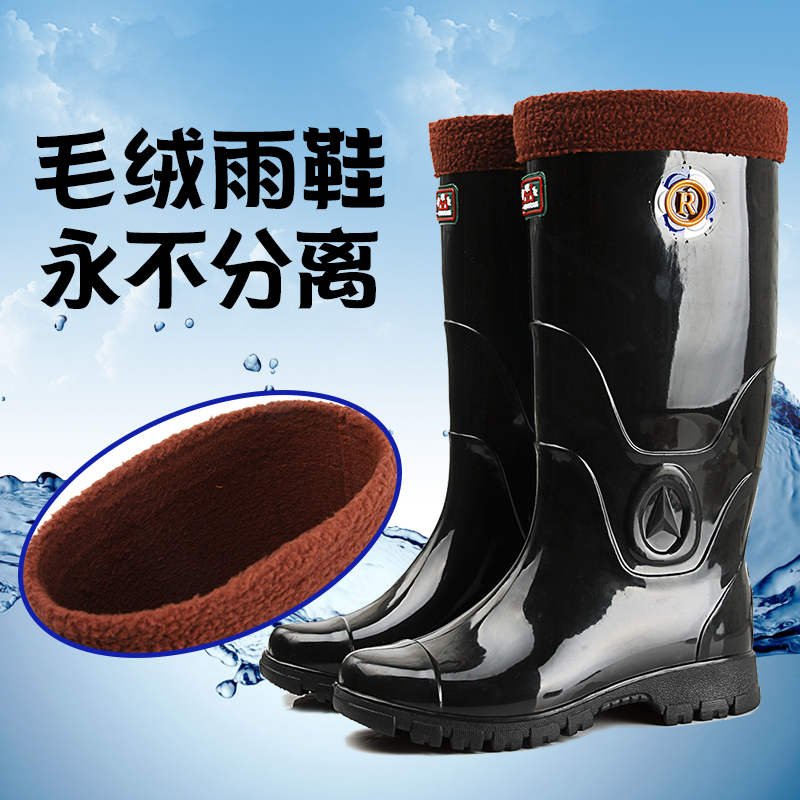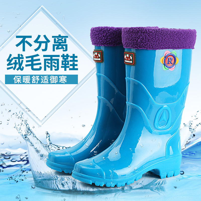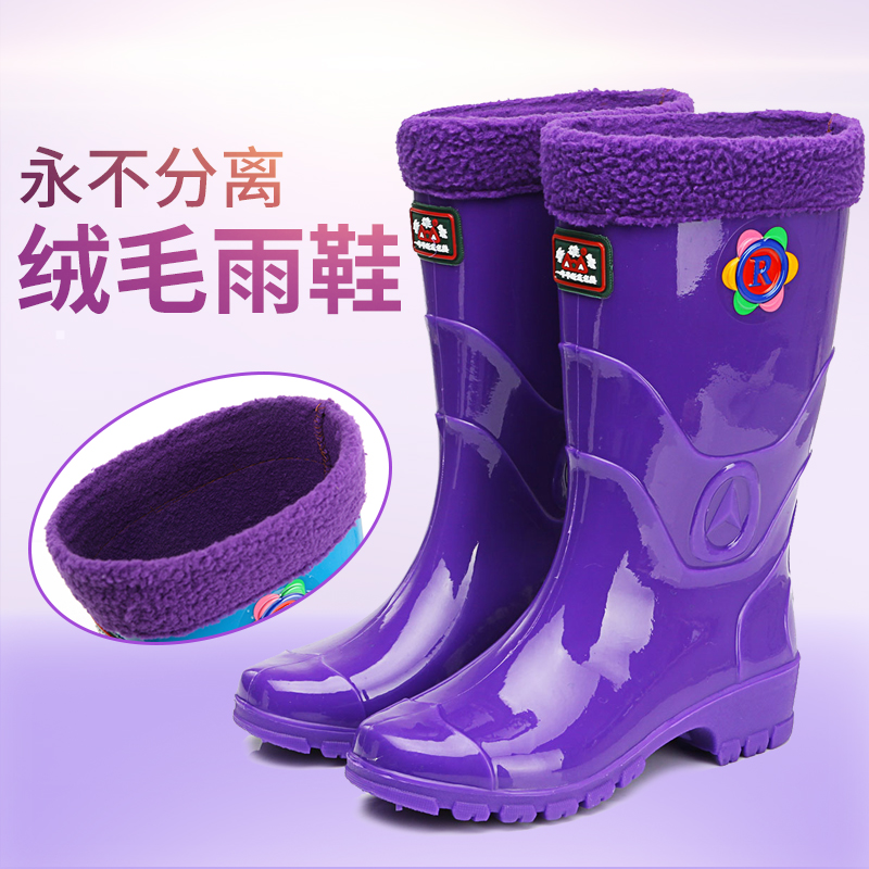 Integrated Suede Warm Rain Shoes Lady Rain Boots