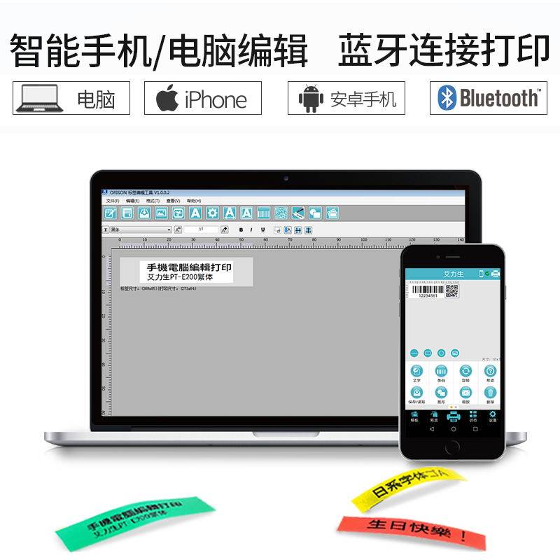 Allison label machine pt-E100 E200 portable handheld Bluetooth home small cable label printer