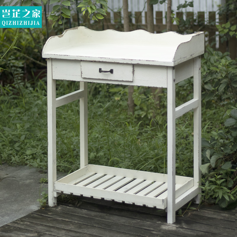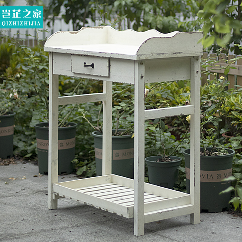 Balcony flower rack field gardening retro old anti-corrosion solid wood rectangular table porch partition decoration shelf outdoor