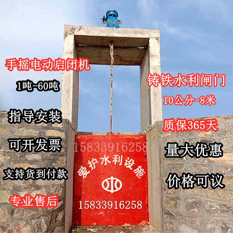 Cast iron gate one-piece steel inlaid copper door channel reservoir side shake manual electric screw hoist screw
