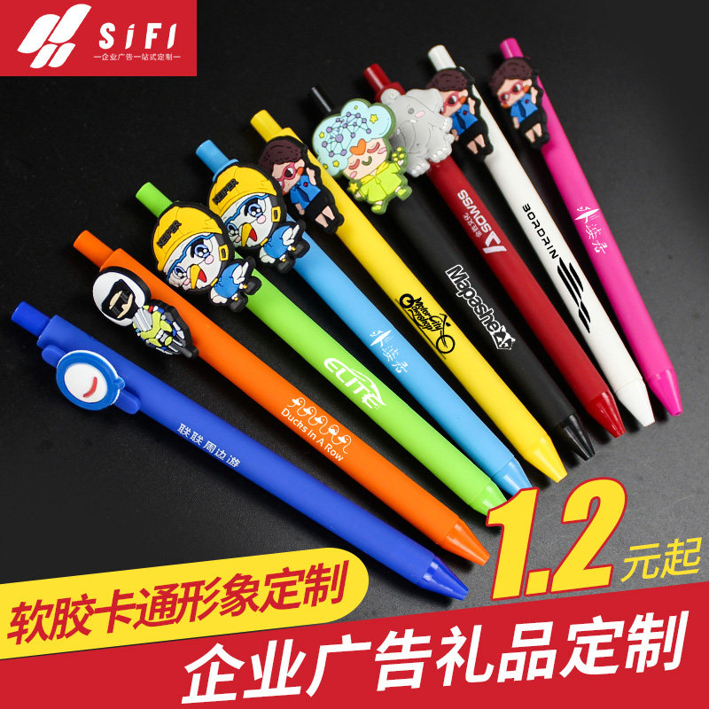 Book source same cartoon soft glue custom color press to promote lettering logo advertising ball neutral pen