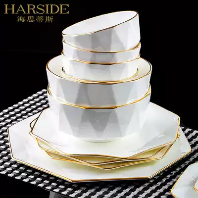 HARSIDE Nordic bone China bowls and dishes tableware set Household simple Phnom Penh high-end ceramic bowls and chopsticks set bowls and plates