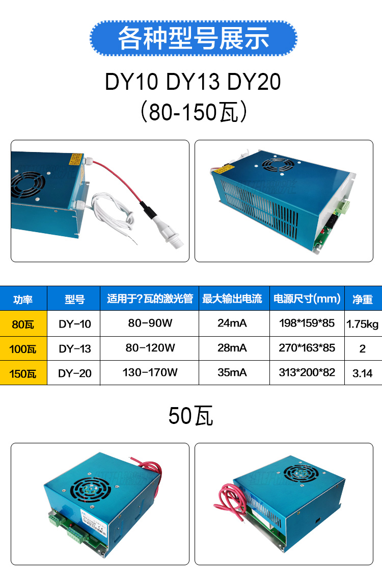 40W (engraving machine special interface MYJG40W) 50W (MYJG50W) HY-DY10 (80 ~ 90W) HY-DY13 (100 ~ 12